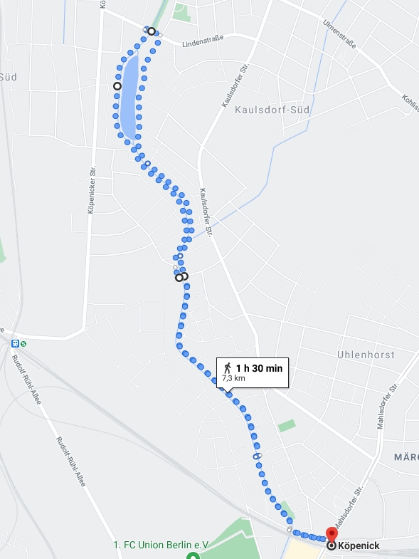 Vom S-Bahnhof Köpenick in Richtung der Alten Försterei trifft man auf die Wuhle, die von Ahrensfelde bis in die Spree fließt. Der Wuhlewanderweg weist einem den gesamten Weg von der Quelle bis zur Mündung.