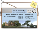 Auf den rbb-Hörfunkwellen wird Pfr. Mathias Laminski in der Woche vom 31.10. bis 05.11.22die „Worte auf den Weg“ sprechen. Und zwar um 5.50 Uhr auf „Radio Berlin 88,8“ dann auf „Kulturradio“ um 6.45 Uhr und schließlich um 9.10 Uhr auf „Antenne Brandenburg“. Hören Sie doch einfach mal rein… Wer das nicht schafft, kann gern alle… (weiterlesen) Der Beitrag wurde am 24. Oktober 2022 geschrieben.