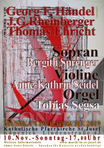 Sonntag, 10.11.2019, 17 Uhr Konzert für Sopran, Violine und Orgel Sopran - Bergith Sprenger Violine - Anne-Kathrin Seidel Orgel - Tobias Segsa Werke von J.G. Rheinberger, C. Franck, T. Ehricht u.a. Die Sopranistin Bergith Sprenger studierte in Weimar und Berlin und ist nach kurzzeitigem Theaterengagement freiberuflich als Lied- und Konzertsängerin tätig. Nicht wenige, auch eigens… (weiterlesen) Der Beitrag wurde am 5. November 2019 geschrieben.
