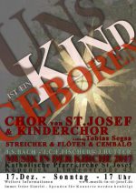 Sonntag 17.12.2017 um 17 Uhr adventliches Chor- und Instrumentalkonzert der Chöre von St. Josef Chor von St. Josef Kinderchor Streicher/Flöten/Cembalo Leitung: Tobias Segsa Mit adventlicher und weihnachtlicher Chormusik möchten der Chor und der Kinderchor von St. Josef auf die bevorstehende weihnachtliche Festzeit einstimmen. Zwei zentrale Werk des Konzertes werden eine Messe von Johann Caspar Ferdinand Fischer… (weiterlesen) Der Beitrag wurde am 11. Dezember 2017 geschrieben.