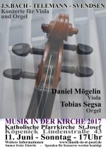 Liebe Freunde und Musikinteressierte, sehr gern möchte ich zu unserem nächsten Konzert einladen. Sonntag, 11.6.2017 um 17 Uhr Konzert für Viola und Orgel Werke von Telemann, Bach, Svendsen Viola: Daniel Mögelin Orgel: Tobias Segsa Daniel Mögelin wurde 1973 in Berlin geboren. Seinen ersten Geigenunterricht erhielt er im Alter von 5 Jahren. Mit 12 Jahren wechselte… (weiterlesen) Der Beitrag wurde am 8. Juni 2017 geschrieben.