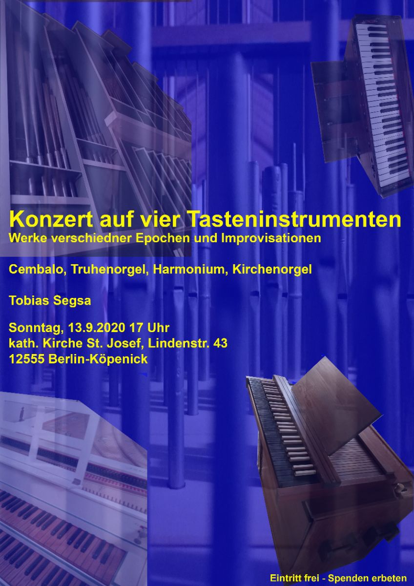 Cembalo, Truhenorgel, Harmonium und Kirchenorgel