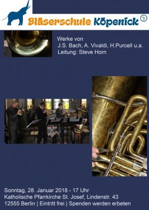 Am Sonntag, dem 28.01.2018 um 17 Uhr musiziert die Bläserschule Köpenick,