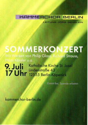 Das Konzert findet in St. Josef, Lindenstr. 43, 12555 Berlin bei freiem Eintritt statt. Am Ausgang bitten wir um Ihre Spende.