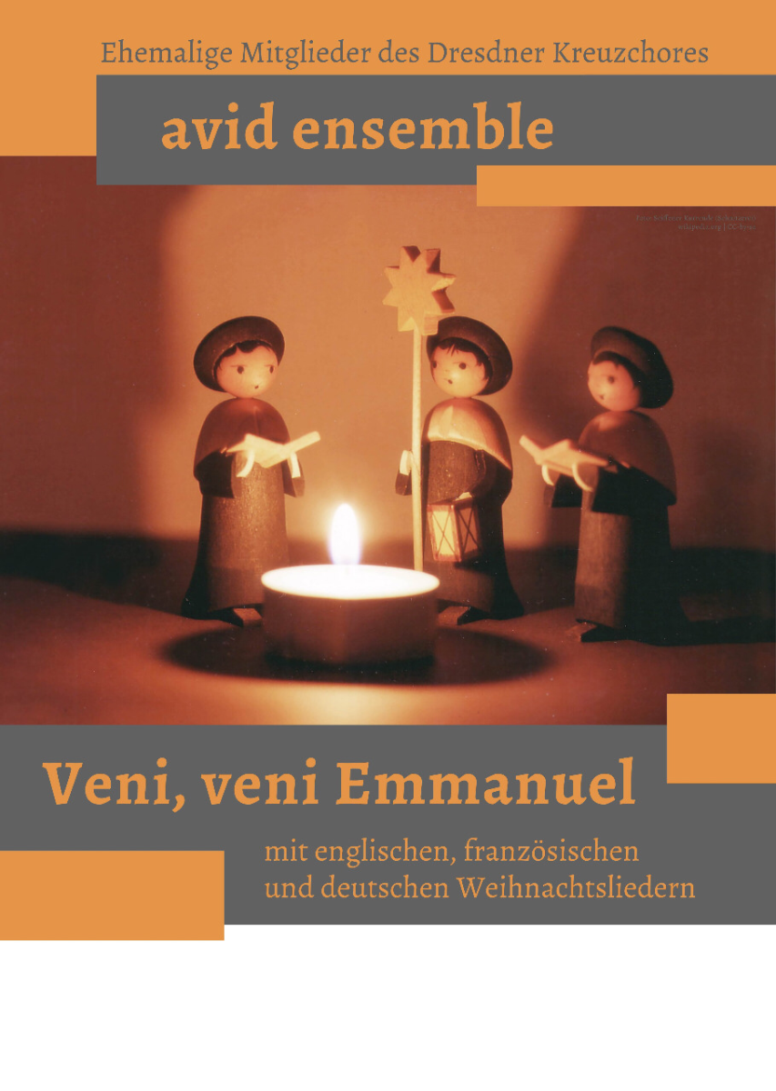 Das Ensemble Avid ist im Jahr 2017 von 6 ehemaligen Kruzianern gegründet worden, die seit ihrer Zeit im Kreuzchor dem Singen und Musizieren treu geblieben sind. Neben Studiengängen wie Gesang und Musikwissenschaften, sind auch Physik oder BWL als Studienrichtungen unter den Mitgliedern vertreten. Die seit der frühen Kindheit bestehenden Freundschaften und das ununterbrochene gemeinsame Singen verbinden die Mitglieder auf besondere Weise und sind die Grundlage für den homogenen Klang und die hohe musikalische Qualität. Das Weihnachtsprogramm, bestehend aus bekannten Volksliedern, Weihnachtsliedern aus dem Genre des „Barbershop“ (entstanden Anfang des 20. Jahrhunderts in den USA) und zeitgenössischen Vertonungen von Volksliedtexten schafft zusammen mit Lesungen der Weihnachtsgeschichte und aktuellen Texten ein abwechslungsreiches und sphärisches Konzerterlebnis und lässt nach Heiligabend und den Feiertagen, „nochmal so richtig Weihnachten“ werden.