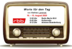 Liebe Mitglieder und Freunde unserer Pfarrei St. Josef Treptow – Köpenick, vom Montag, den 10. August bis Sonnabend, dem 15. August können Sie auf den rbb-Radiosendern „Radio 88,8“ um 5.50 Uhr, dem „Kulturradio“ um 6.45 Uhr und auf „Antenne Brandenburg“ um 9.12 Uhr wieder „Worte zum Tage“ von Pfr. M.Laminski hören. Vielleicht sind Sie auf… (weiterlesen) Der Beitrag wurde am 14. August 2020 geschrieben.