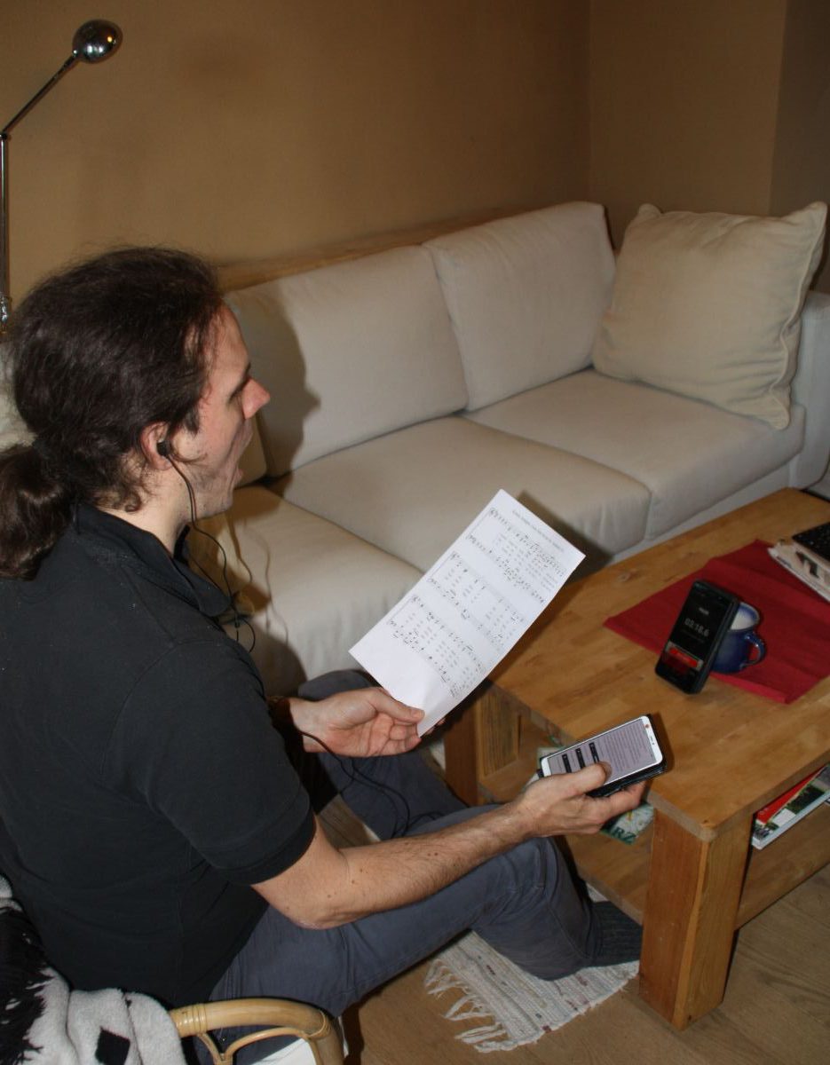 Ihr benötigt, ein Smartphone mit einer Aufnahme-App, oder ihr nutzt die Whatsapp-Funktion für die Sprachnachrichten. Außerdem benötigt ihr ein zweites Gerät, mit dem ihr die Übungsvorlage per Kopfhörer abspielt. Dies kann ein Computer oder ein zweites Smartphone sein, bei dem diese Seite geöffnet ist. Das zweite Gerät verbindet ihr mit einem Kopfhörer und singt gleichzeitig (!) mit der Übungsvorlage, damit die Tonart und das Tempo stimmen. Diese Whatsapp-Sprachnachricht oder Audiodatei schickt ihr dann an mich. Eine Bitte noch an die Haushalte mit zwei Chorsängerinnen und -sängern: Bitte nehmt jede Stimme separat auf, also nicht zusammen z.B. Sopran/Bass, das macht die Abmischung einfacher.