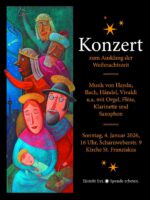 Herzliche Einladung zu einem Konzert zum Ausklang der Weihnachtszeit mit Musik von Haydn, Bach, Händel, Vivaldi u.a. mit Orgel, Flöte, Klarinette und Saxophon. Sonntag, 4.Januar 2026 um 16.00 Uhr in der Kirche St.Franziskus, Berlin - Friedrichshagen, Scharnweberstr.9 (Der Eintritt ist frei - Um Spenden wird gebeten) (weiterlesen)