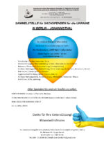 Die ukrainische Gemeinde hat eine Sammelstelle für Sachspenden und zur finanziellen Unterstützung von Menschen in der Ukraine eingerichtet. Auf dem Plakat, oben als Titelbild, finden Sie alle Informationen. Außerdem hat die Caritas, zusammen mit Erzbischof Heiner Koch und dem Diözesanrat einen Aufruf veröffentlicht: Ukraine – Menschen in Not unterstützen. Darin finden Sie gesammelt alle Möglichkeiten,… (weiterlesen) Der Beitrag wurde am 17. März 2022 geschrieben.