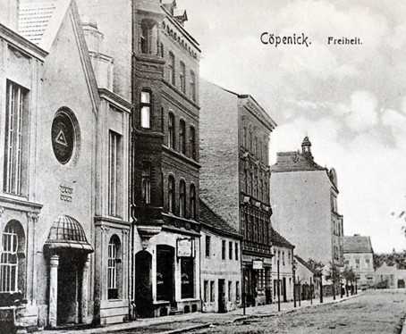 Berlin-Köpenick, Freiheit 8, war nur kurze 28 Jahre die Adresse der Synagoge. Obwohl es in Köpenick bereits Ende des 19. Jahrhunderts eine respektable jüdische Gemeinde gab, hatte diese kein eigenes Gotteshaus. Die Gottesdienste fanden in Festsälen oder sogar im Ratskeller statt. Erst am 25. September 1910 konnte die Synagoge, die nach Plänen des Rixdorfer Architekten Adolf Sommerfeld errichtet worden war, geweiht werden. Mit dabei auch Mitglieder der Köpenicker Verwaltung und der christlichen Gemeinden. Die Synagoge stand fortan mitten in Köpenick, in einem geschlossenen Blockrand mit Wohnhäusern.
