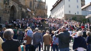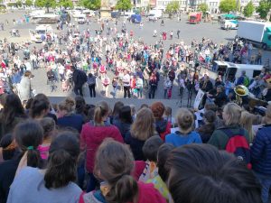Nach dem Mittagessen versammelten sich alle Chöre auf den Domstufen. Von dort aus wurde für die Stadt und auch mit der Stadt Erfurt, zumindest mit den vielen, die sich auf dem Marktplatz versammelt hatten, gesungen.
