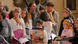 Kinder- und Jugendchor St. Josef mit seinem Leiter Tobias Segsa