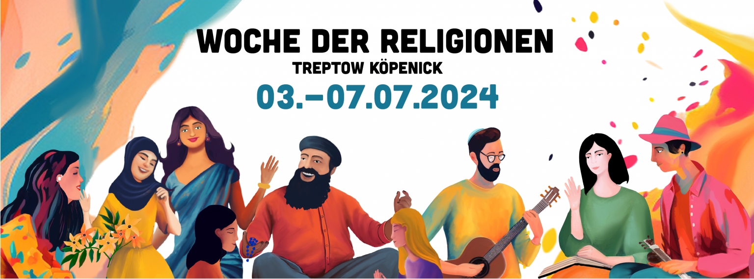 Für fünf Tage treffen sich Menschen verschiedener Religionen und Weltanschauungen in Treptow-Köpenick und können die Facetten des Glaubens bei Workshops, Podiumsdiskussionen, Meditation, Musik- und Kochabenden in unterschiedlichen Teilen unseres Stadtbezirks erleben.